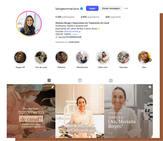 Sou Mariana Borges, dentista especialista em Endodontia (tratamento de canal), com mais de 10 anos de experiência na área.